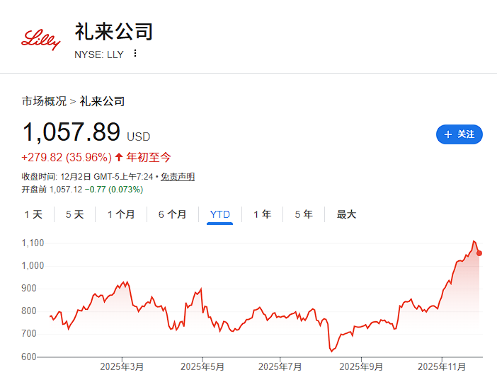 这一计谋环境的豁达化裁汰了投资者对制药行业监管不信服性的担忧,为包括礼来在内的大型生物制药公司创造了更成心的估值条件。礼来股价本年以来已累计攀升37%,弘扬强于大盘。
