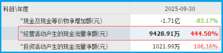 但比拟之下,9428.91万元的计较现款流净额和444.51% 的增速,险些像是来自另一家公司。