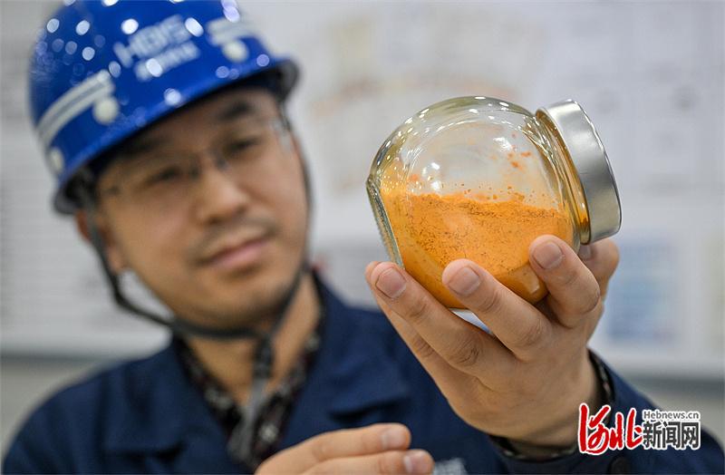1月15日,承德钒钛家具技能室隆重东谈主冯国晟向记者展示高纯无氧化二钒样品。河北日报记者 李东宇摄