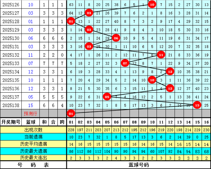 蓝球分析:最近7期蓝球号码012路比为3:2:2,奇偶比为4:3,大小比为5:2,本期展望蓝球开出小 号,参考蓝球号码01。