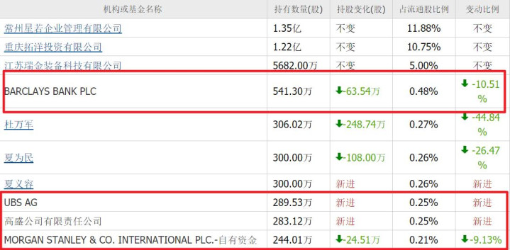 其中,瑞银、高盛新进前十,巴克莱、摩根均小幅减仓,不错说个个齐是重仓。