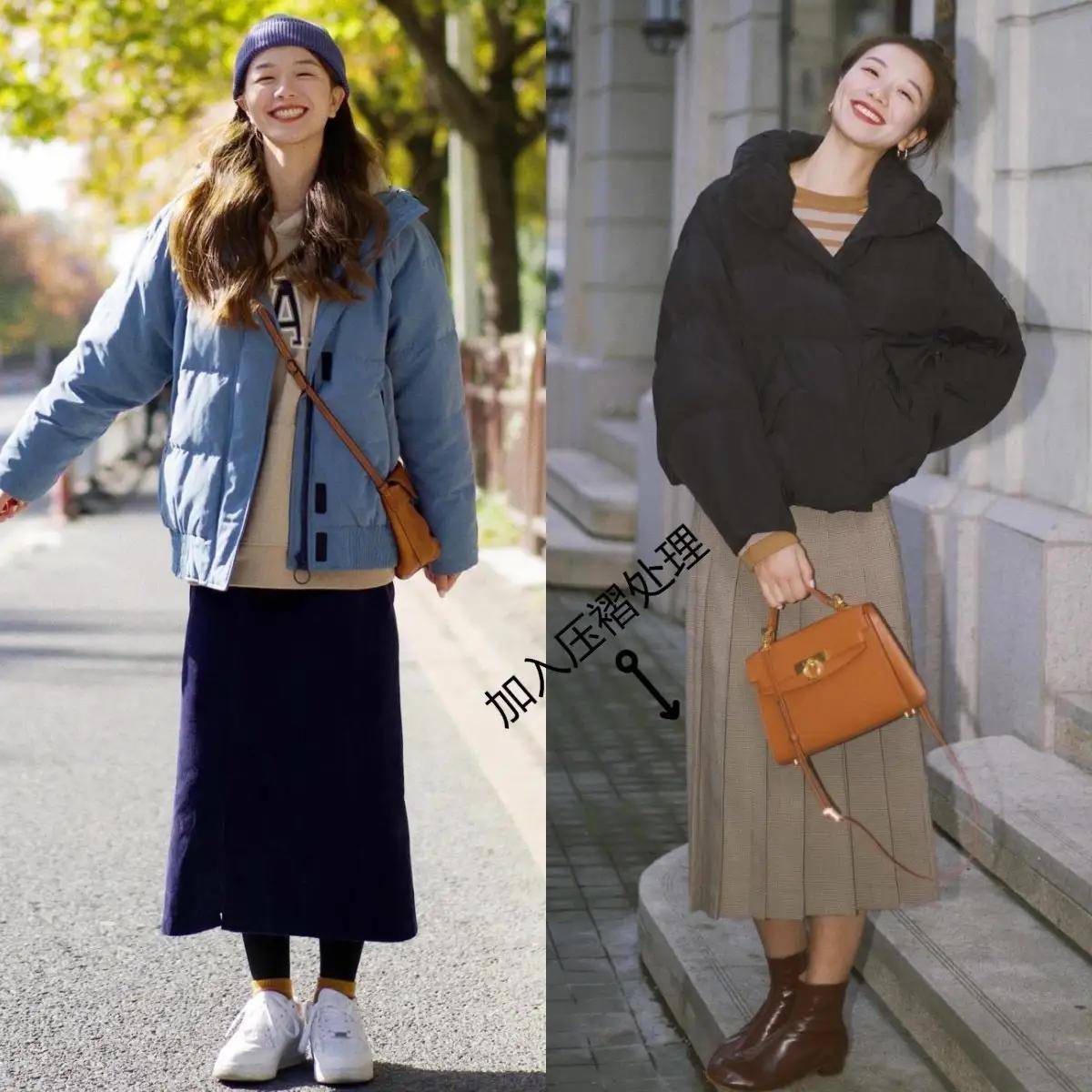 (二)绗缝棉服正确穿法①:裤子VS裙子