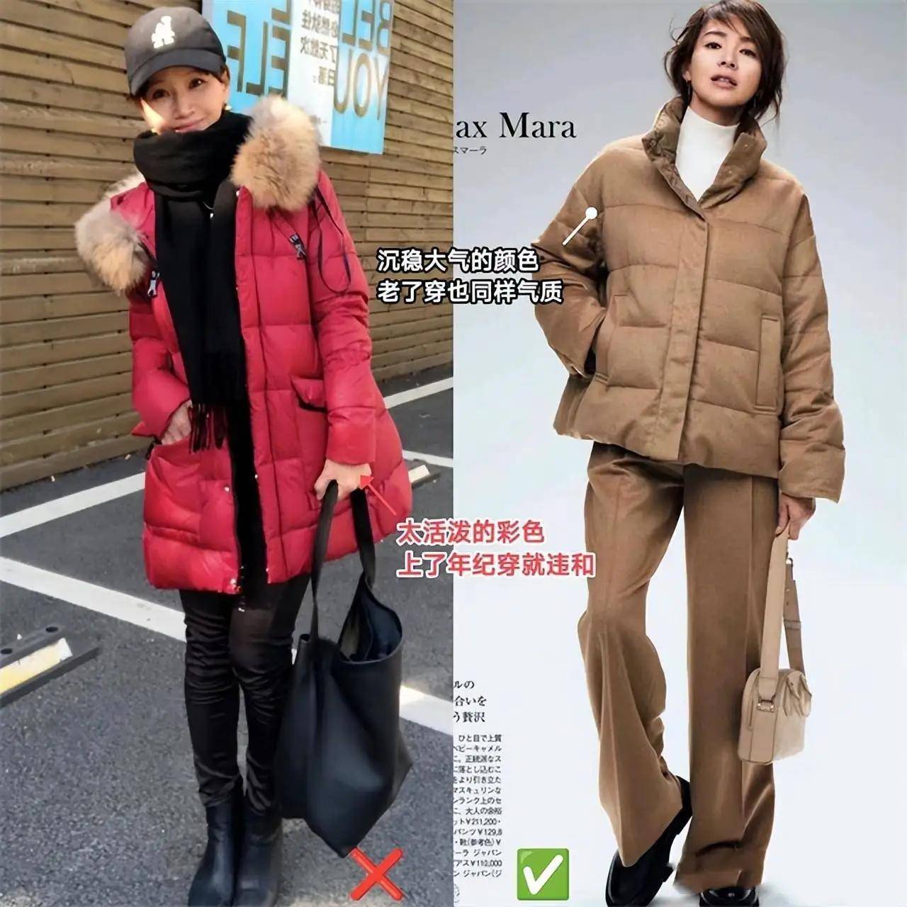 有的时刻就算你处治了一稔的面料版型时势,然而色调莫得选对,穿上去也会有违和感,突出是上了一定年事的女性,还遴荐像上头这一款大红色的彩色系绗缝棉服,穿在身上之后,并莫得那种思要的高等感。