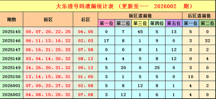 后诀别析:上期后区开出号码07、08,为大大奇偶组合。