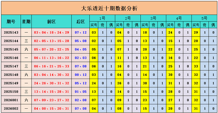 最近10期后区大小比为11:9,最近10期后区大大组合开出4期,小大组合开出3期,小小组合开出3期。上期开出大大组合,本期看好小大组合出现。